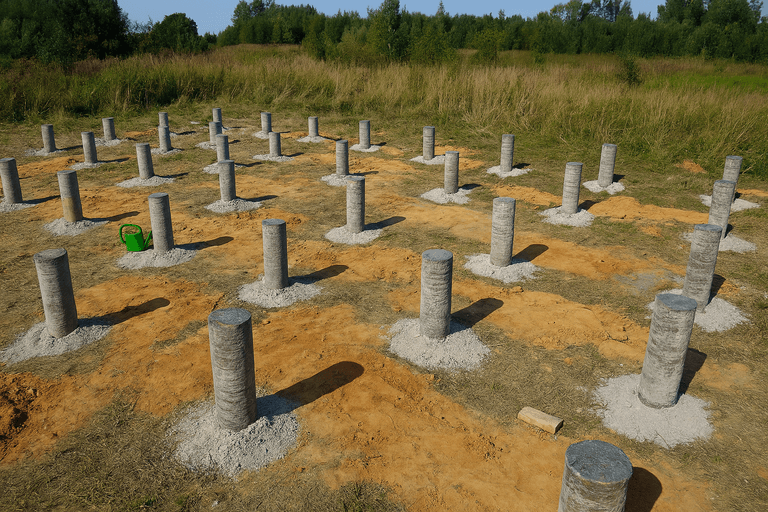 Обычно фундамент ТИСЭ обходится дешевле, чем монолитная плита или ленточный фундамент, особенно на небольших участках и в условиях сложных грунтов. Это делает его бюджетным решением для загородных домов, бань и небольших построек.